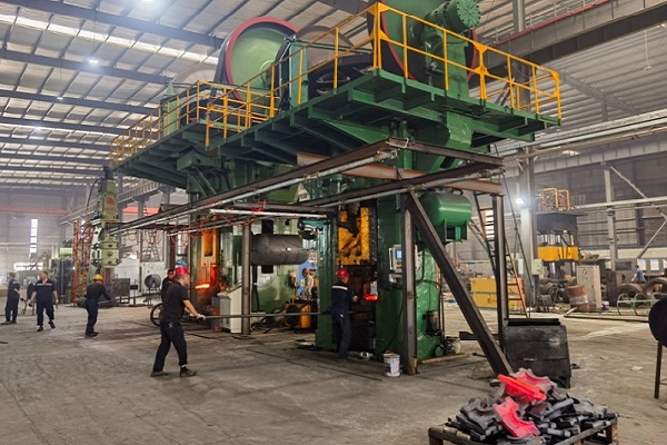8月底,公司新建的8000噸鍛造生產線正式投產。該生產線由兩臺雙盤摩擦壓力機(J53-8000B、J53-1600C)與2T全液壓單臂式自由鍛電液錘、全自動850輥鍛機、操作機、以及1600KW-IGBT中頻爐、閉式冷卻塔、供配電系統等設施設備構成,總投資995.86萬元。